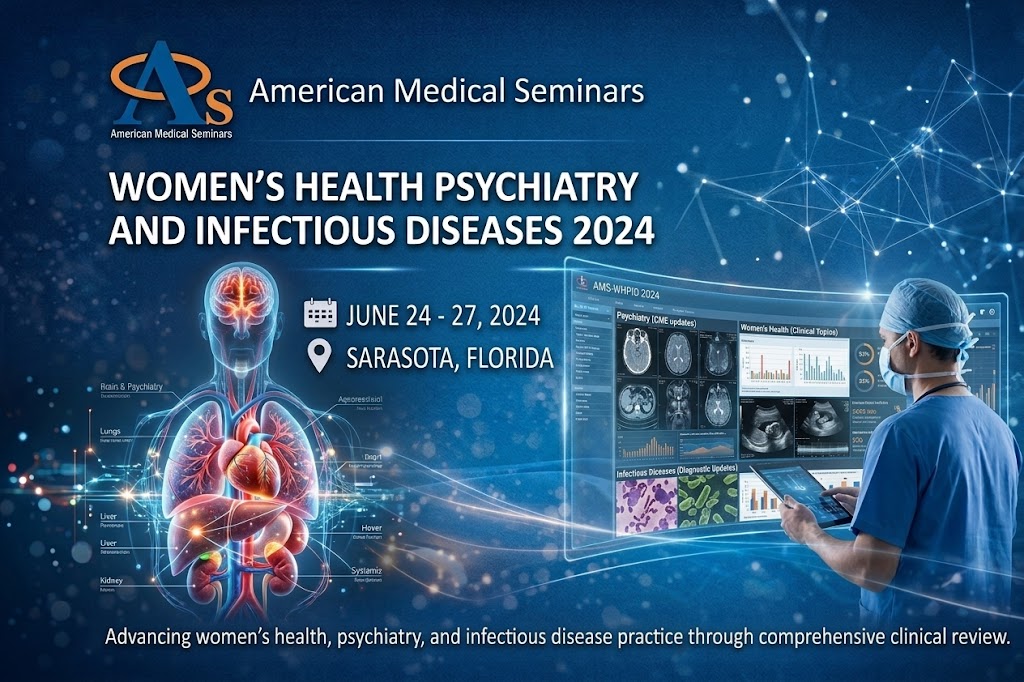 Women’s Health/Psychiatry and Infectious Diseases is organized by American Medical Seminars (AMS), Inc. and will be held from Jun 24 – 27, 2024 at Embassy Suites by Hilton Sarasota, Sarasota, Florida, United States of America.
