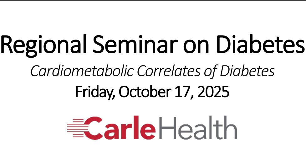 The Carle Health System Regional Seminar on Diabetes is a professional educational program focused on advanced cardiometabolic care and diabetes management. Taking place on October 17, 2025, this seminar provides critical updates on continuous glucose monitoring, targeted pharmacotherapies like SGLT2 inhibitors and GLP-1 agonists, and the management of associated conditions such as steatotic liver disease and cardiovascular disease.