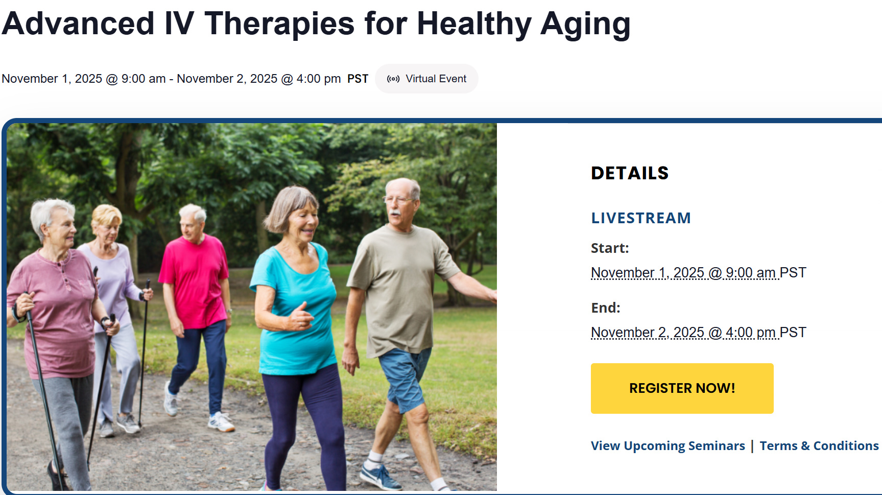 Advanced IV Therapies for Healthy Aging November 1, 2025 @ 9:00 am – November 2, 2025 @ 4:00 pm