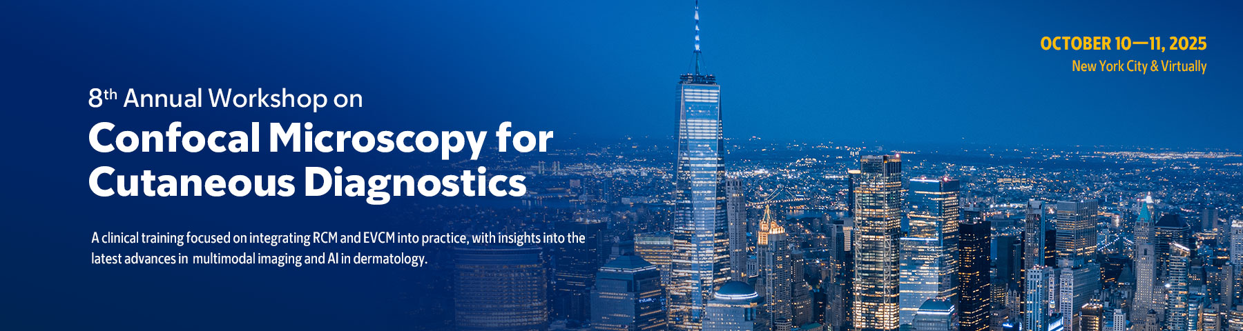 Building on the success of our previous seven workshops, we’re excited to invite you to the 8th Annual Workshop on Confocal Microscopy for Cutaneous Diagnostics. Led by a distinguished faculty of experts, this year’s training program focuses on the clinical integration of Reflectance Confocal Microscopy (RCM) and Ex Vivo Confocal Microscopy (EVCM), along with emerging multimodal imaging technologies and the evolving role of Artificial Intelligence (AI) in dermatology. Designed for both newcomers and experienced clinicians, the interactive format features didactic lectures, case-based discussions, engaging quizzes, and pre-recorded demonstrations.