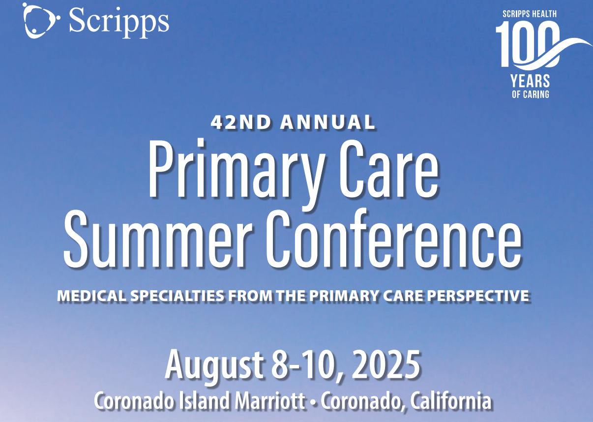 Scripps Health’s Primary Care Summer Conference is designed for primary care physicians and the interdisciplinary care team, offering a unique perspective on various therapeutic areas. This conference aims to enhance patient outcomes in primary care by providing practical, patient-focused content. Attendees will gain insights into the history and current science of multiple specialties, tailored to address the specific challenges of primary care practices and physician leaders.