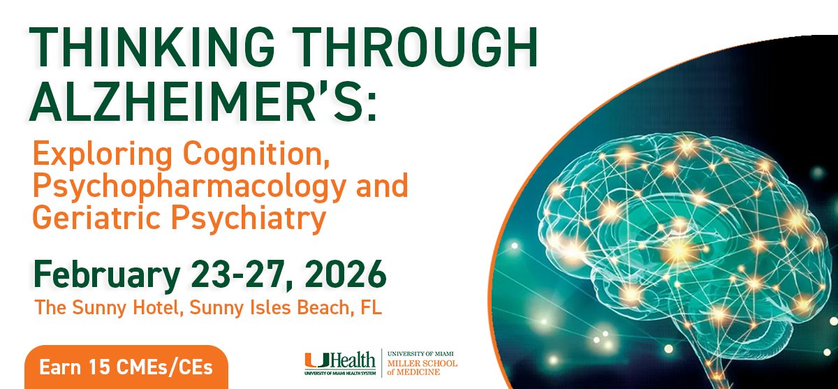 The University of Miami Thinking Through Alzheimer’s Exploring Cognition, Psychopharmacology and Geriatric Psychiatry 2026 course provides a comprehensive clinical update on dementia care and geriatric mental health. The program covers the spectrum from normal cognitive aging to early Alzheimer’s diagnosis, highlighting new breakthroughs in neuropsychological assessments, emerging biomarkers, and the latest pharmacological and non-pharmacological management strategies.